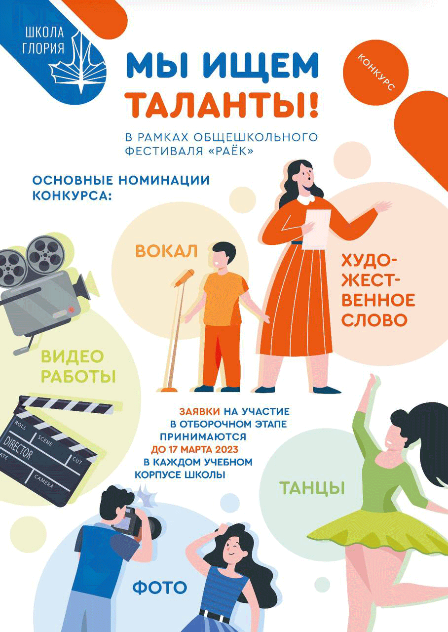 В этом сезоне мы проводим его внутри всех школьных корпусов. Регистрация на фестиваль проводится в пяти номинациях: танец, вокал, театр слова, фото и видео. Все подробности можно узнать у кураторов классов и педагогов-организаторов. Финальный этап фестиваля состоится в конце марта.