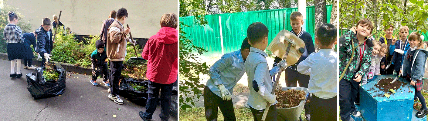 Четвероклассники дружно убирали на своём участке школьной территории опавшие листья. Третьеклассники не отставали от старших друзей, нагребли целую тачку листвы, а потом ещё и посадили луковицы цветов. Второклассники устроили акцию "Сделай весну своими руками". Они привели в порядок клумбы и посадили тюльпаны, нарциссы и бархатцы.