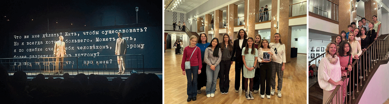 Театралы из параллели профильных десятых классов посмотрели новое сценическое прочтение знаменитого романа. Ребята вместе с Раскольниковым прошли непростым путём нравственных исканий и духовного познания, соприкоснулись с вечными ценностями русской классики. Мрачный туманный Петербург представлен в постановке стильными и изящными декорациями, а красочное световое и музыкальное оформление спектакля "Р. Р. Р." служат не просто фоном действия. Композиция Карла Дженкинса "Палладио" несёт большую смысловую нагрузку, помогая артистам раскрывать сложный мир героев романа Достоевского, мотивацию их поступков.