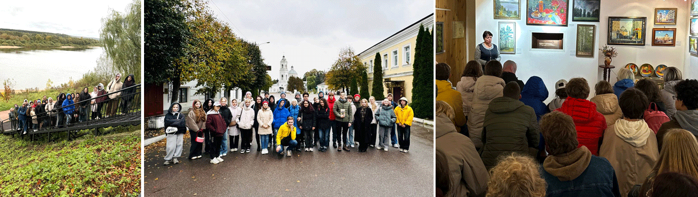Сначала ребята побывали на обзорной экскурсии по Тарусе, где увидели собор Петра и Павла, в котором находится уникальный каменный резной иконостас. Потом десятиклассники прошлись вдоль Оки, остановились у памятников Цветаевой, Паустовскому, обсудили их творческие судьбы и вспомнили некоторые произведения. У памятника поэтессе Белле Ахмадулиной ребята прочитали наизусть отрывки из стихотворений. Также в Тарусе школьники посетили музей Марины Цветаевой, расположенный в восстановленном "Доме Тьо". Он получил это название потому, что вторая жена-швейцарка деда Цветаевых плохо говорила по-русски, и обращение к ней младших девочек - "тётя"- в её варианте звучало как "тьо".