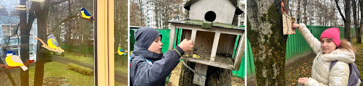Сначала юннаты обсудили важность праздника и акции "Помогите птицам", потом украсили окна и устроили конкурс на самую оригинальную кормушку. Ребята развесили свои кормушки на территории школы. Теперь они будут следить за тем, чтобы в них всегда были лакомства для "зимних гостей" - несолёное сало или нежареные семечки. Так у птиц гораздо больше шансов пережить холодное время года.