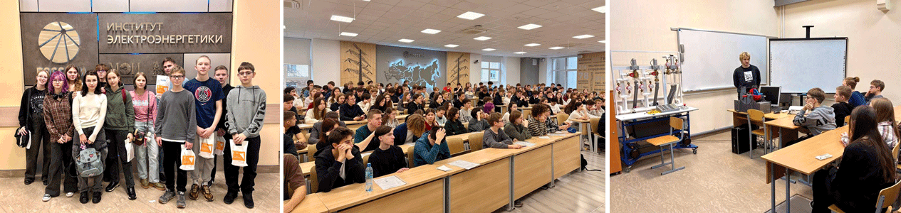 Сначала ребята познакомились с инженерными, ИТ и экономическими институтами НИУ "МЭИ", правилами приёма, порядком подачи документов. Потом для школьников была организована экскурсия по аудиториям и лабораториям университета с погружением в студенческую жизнь. Ещё ребята сыграли в деловую игру "Математическое моделирование. Год защитника Отечества и 80-летия Великой Победы". Они заранее разделились на пары, так как по условиями игры в составе команд могло быть два человека - первый из 9-го класса, а второй - из 10-го.