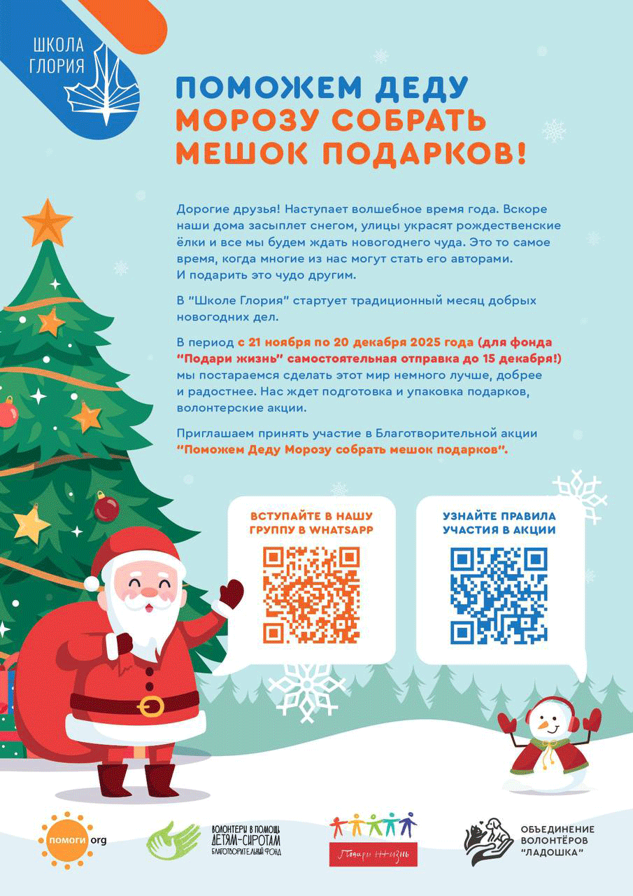 Объявляем старт нашей традиционной благотворительной акции "Поможем Деду Морозу собрать мешок подарков". Вместе мы сможем сделать этот мир добрее и чудеснее!