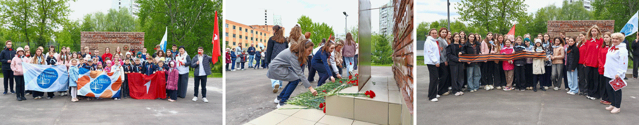 Вместе с представителями других школ межрайона ребята возложили цветы к памятнику "Жителям деревень Бибирево, Подушкино, Алтуфьево и Юрлово, павшим на фронтах Великой Отечественной войны". Красная гвоздика - символ, который в России традиционно связан с памятью о подвиге героев и благодарностью им. Возложение цветов в Подушкинском проезде подарило все присутствующим ощущение единства друг с другом, с о всеми теми, кто сегодня в разных районах Москвы и городах России помнит и благодарит героев за Великую Победу. Школьники также почтили память героев Великой Отечественной войны минутой молчания.