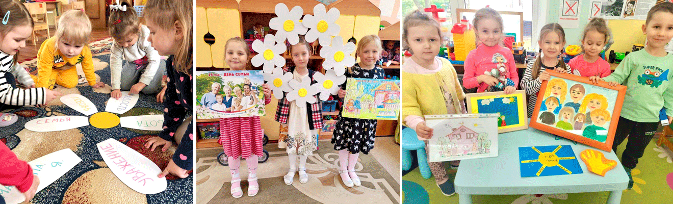 В дошкольных отделениях "Глории" прошли мероприятия, посвящённые Международному дню семей, ведь семья для каждого человека - это любовь, радость, поддержка. Малыши играли в пальчиковую игру "Семья", рассказывали про своих членов семьи, а потом рассматривали рисунки, которые нарисовали вместе с родителями дома. Дети рассуждали о том, что наши семьи неразлучны и дружны, словно пальчики на руке. Дошколята также приняли участие в дидактических и сюжетно-ролевых играх "Назови ласково", "Дочки и сыночки" и нарисовали рисунки "Семья - это мои родные и я".