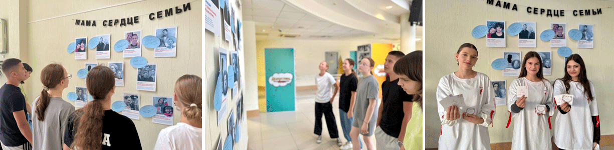 В корпусе на #Белозерская12 всю неделю работала выставка, которую подготовили активисты "Движения Первых" под руководством педагогов-организаторов. "Мама - сердце семьи" название выставки выбрано неслучайно. Ребята изучили много судеб известных людей, и роль матери в жизни каждого из них. Они нашли их совместные фото или портреты, а также цитаты, которые знаменитости говорили о своих мамах. На всех этажах можно было найти красиво оформленные карточки про мам, подаривших жизнь всеми знакомым людям. В холле второго этажа разместилась подборка с несколькими портретами и историями, которая собрала много положительных отзывов от зрителей.