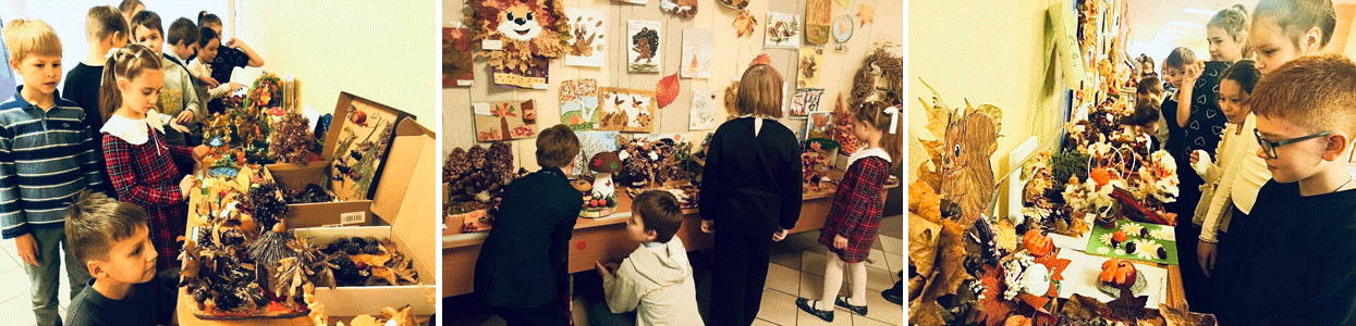 В экспозиции в этом году была представлена 91 работа из природного материала, это рекордное количество для выставки, ставшей традиционной в начальной школе. Рисунки, панно, аппликации, макеты - ребята выбрали самые разные жанры для создания своих осенних поделок.
