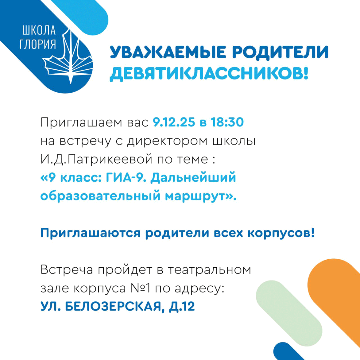 Встреча директора ГБОУ "Школа Глория" с родителями девятиклассников